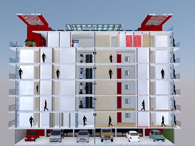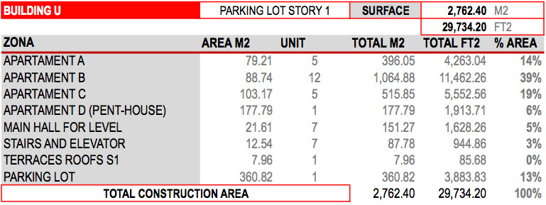 • A construction area of 2,762.40 m2 (29,734.20 ft2) for building, 23 apartments in 6 floors, distributed as follows: