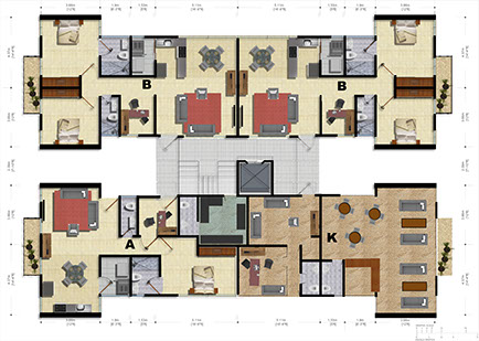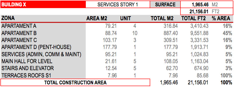 • A construction area of 1,965.46 m2 (21,156.01 ft2) for building, 18 apartments in 5 floors, distributed as follows: