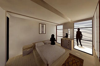 These are medium-sized apartments, feature two bedrooms and are the highest in number. These apartments are 2 per floor (except for the 5th floor that houses the Penthouse), feature a main room with bathroom and dressing room, one additional bedroom with closet, living room, dinning room with kitchenette, laundry room, full bathroom, bedroom or study, terrace or balcony.