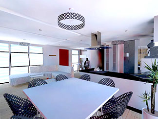 This is the biggest type featuring 3 bedrooms at the 5th floor, feature a main room with dressing room, and two additional bedrooms with restroom and closet, living room, dining room with kitchenette, half bathroom, laundry room, full bathroom, bedroom or study, terraces and balcony