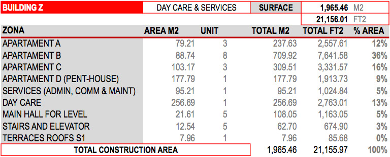 • A construction area of 1,965.46 m2 (21,156.01 ft2) for building, 15 apartments in 5 floors, distributed as follows: