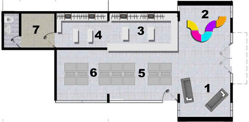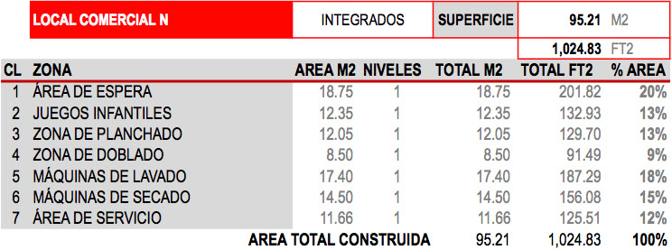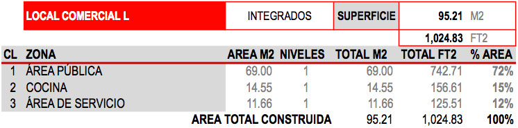 En el edificio W en planta baja, se ubicó un local comercial de 95.21m2 (1,024.83ft2) tipo L, M o N, nomenclatura asignada de acuerdo al uso o destino del local: