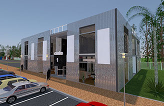 • y la zona de servicios (local comercial, oficinas administrativas y bodega de mantenimiento);