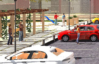 Adicionalmente al trabajo de edificación se encuentran los de urbanización (banquetas, calles, áreas verdes, cajones de estacionamiento, áreas de esparcimiento). Siendo parte del diseño del paisaje e interactuando con los edificios y las amenidades del conjunto.
