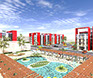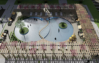 Área de descanso. Es una zona localizada al aire libre que tiene espacio para piscina para adultos e infante. Lo rodea un camino pergolado para darle intimidad y resguardarlo del asoleamiento en la zona de descanso.
