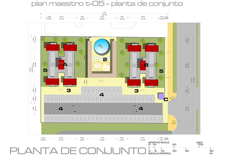El planteamiento se desarrolla en un terreno de 4,047.69 m2 equivalentes a 1.00 Acre. Es un conjunto privado de vivienda en vertical de 2 edificios de 5 niveles, con un total de 36 unidades vendibles (UV) de diferentes tamaños 1, 2 y 3 recámaras, incluye un área de servicios, ubicada en la planta baja del edificio X (administración, local comercial y mantenimiento) y también cuenta con una garita de acceso. Este conjunto tiene 3,936.87 m2 (42,376.11 ft2) de construcción. Este proyecto es ecológico en sus tecnologías de ahorro y de generación de energía y tiene las siguientes áreas descubiertas: parqueo para 66 autos, zonas verdes, un área de descanso, circulaciones peatonales las cuales suman 3,267.69 m2 (35,173.14 ft2).