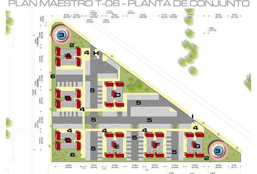 • Infraestructura vial. El diseño vial de los conjuntos obedecen a estrictas normas de proyecto urbano, y dadas las magnitudes de nuestros desarrollos, las calles, accesos y parqueos tienen las siguientes características